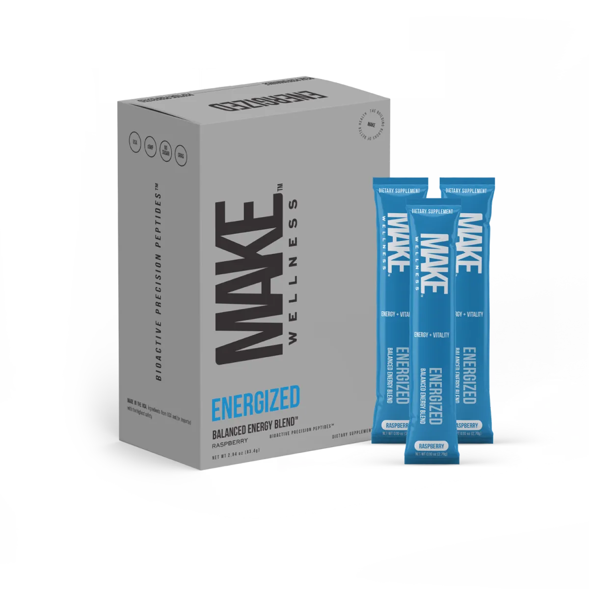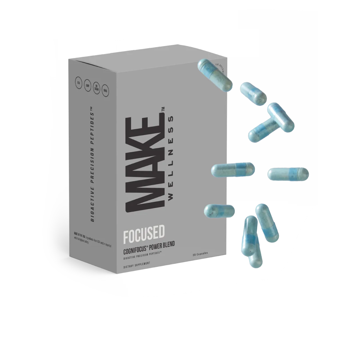 Bioactive Precision Peptides are short chains of amino acids derived from natural sources that act as signaling agents—supporting normal cellular processes like recovery, energy production, and focus. MAKE markets these as “Bioactive Precision Peptides™” and emphasizes AI-assisted discovery and clean formulations targeted to common wellness goals (energy, recovery, focus).